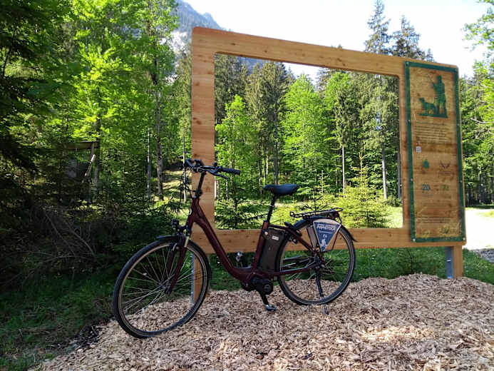 Dieser aussichtsreiche Themenweg im Naturpark Ammergauer Alpen zum Kennenlernen des Bergwaldes führt von Ettal nach Linderhof. Sieben überdimensionale Holzrahmen lenken unterwegs die Aufmerksamkeit auf charakteristische Merkmale des Waldes. Die Tour wird sowohl von Wanderern als auch von Radfahrern unternommen.