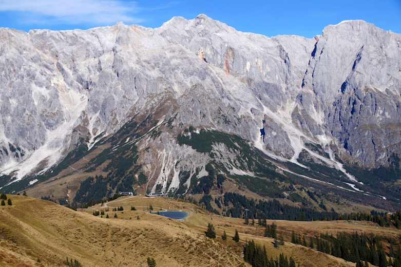 Die Kamera nicht vergessen – vom Ahornstein hat man einen wunderbaren Ausblick auf das Hochkönigmassiv. Besonders schön ist die Tour auch im Herbst, mit den bräunlich gefärbten Almwiesen.