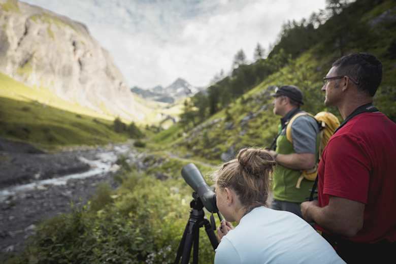 Diese Tour sollte man unbedingt als geführte Ranger:innentour über den Nationalpark Hohe Tauern Osttirol buchen, denn dafür wird man mit Spektiv & Fernglas von Swarovski Optik ausgestattet und die Ranger:innen wissen sehr genau, wo die Tiere zu finden sind.