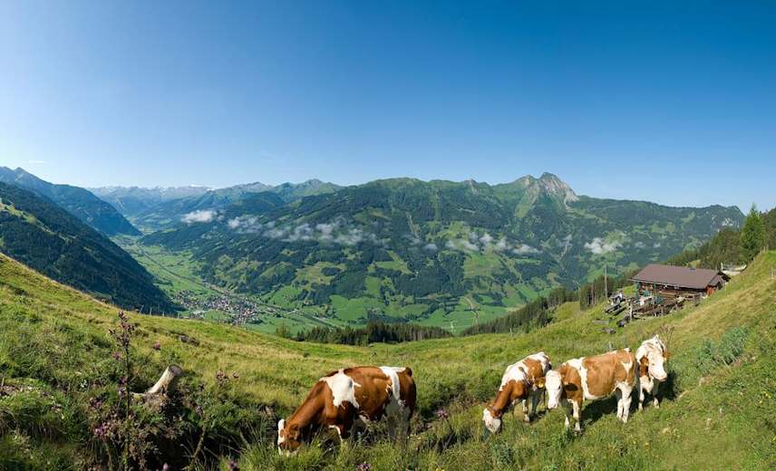 Die Wanderung zur Steiner Hochalm auf 1.550 Metern Höhe belohnt mit einem herrlichen Blick über das Gasteinertal. Der Weg beginnt am Solarbad in Dorfgastein und führt weiter über Bergwiesen und durch dichten Hochwald bis zur Alm.