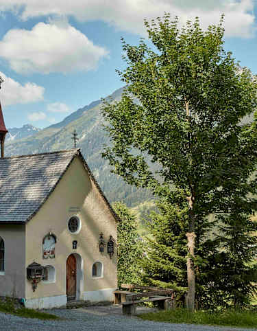Die leichte Rundwanderung im Tiroler Paznauntal startet am Dorfplatz in Kappl und führt über Weiler und Waldwege bis zur Heiligkreuz Kapelle und Ruhesteinkapelle.