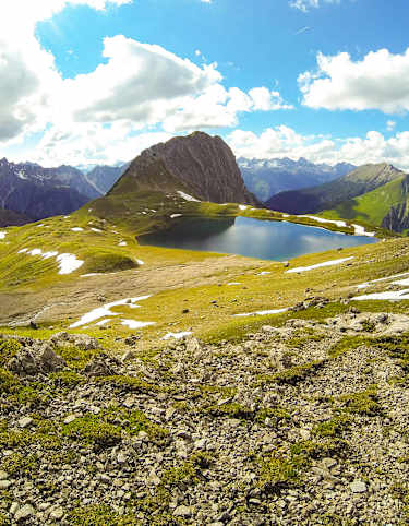 Hüttenzustieg Einkehrmöglichkeit Bergsee am Weg Rundtour