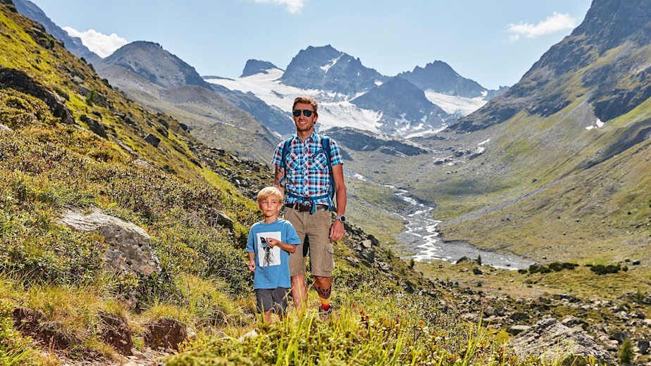 Die familienfreundliche Wanderung von Galtür zur Scheibenalm bietet eine gemütliche Route durch die Tiroler Silvretta-Gruppe. Schon früh im Aufstieg zur Menta Alm eröffnet sich ein faszinierender Blick auf den Jamtalgletscher. Die Menta Alm sowie die Scheibenalm sind perfekte Orte für eine Rast und bieten die Gelegenheit, Paznauner Spezialitäten zu genießen.