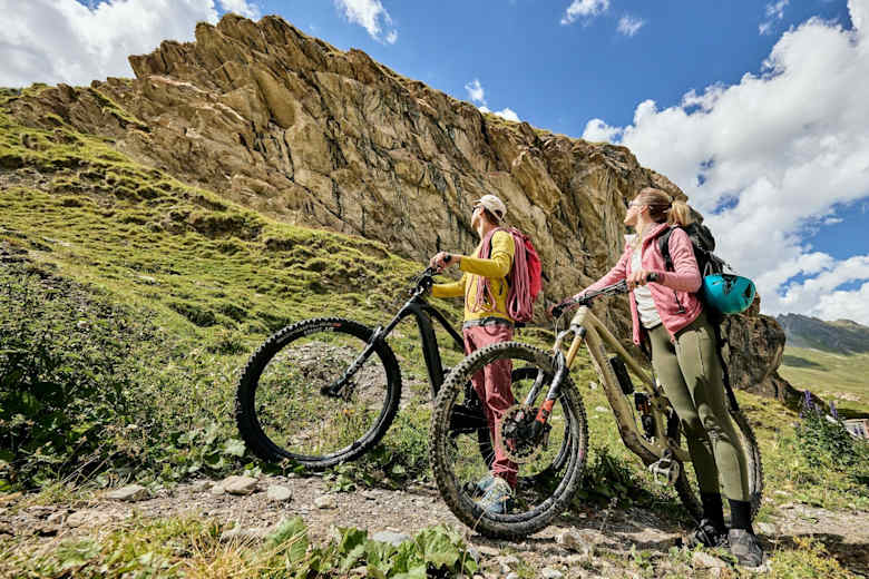 Per Bike und Hike gelangt man zu drei beeindruckenden 3.000ern in der Silvrettagruppe zwischen Österreich un der Schweiz – zur Breiten Krone (3.079 m), dem Grenzeckkopf (3.048 m) und der Bischofspitze (3.029 m). Die Tour startet in Ischgl und führt durch das beeindruckende Fimbatal zur Heidelberger Hütte auf 2.264 Metern. Ab hier startet die Wanderung zum Kronenjoch und zu den Drei Gipfeln mit einem hervorragendem Panorama.