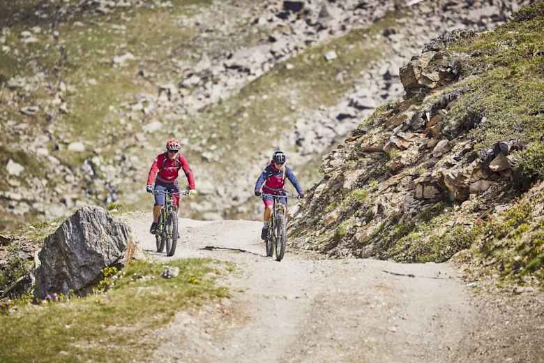 Die Route startet bei der Talstation der Medrigjochbahn in See. Von da aus fährt man zunächst entlang der Paznauntalstraße taleinwärts und biegt am Istalanzbach auf den Forstweg Richtung Panoramarestaurant ab. Die weiten Kehren führen durch waldiges Gelände immer weiter den Berg hinauf. Nach knapp 600 Höhenmetern queren Sie den Istalanzbach und gelangen in moderater Steigung zum Panoramarestaurant der Bergbahnen See (1.850 m). Von dort aus schlängelt sich der Weg wiederum in weitläufigen Kehren hinauf zur Ascherhütte (2.256 m). Hier kann das Bike im Bikedepot abgestellt werden. Die Ascherhütte ist nicht nur aufgrund der Aussicht, sondern auch kulinarisch einen Besuch wert. Zu Fuß geht es nun den Markierungen folgend vorbei an einigen Bächen Richtung Rotpleiskopf (2.936 m). Knapp unterhalb des Gipfels findet sich mit Blöcken durchsetztes Gelände sowie eine ausgesetzte mit Drahtseil versicherte Stelle. Oben angekommen wartet nicht nur das große Gipfelkreuz, sondern auch eine fantastische Aussicht auf die Verwallgruppe inklusive Hoher Riffler (3.168 m).