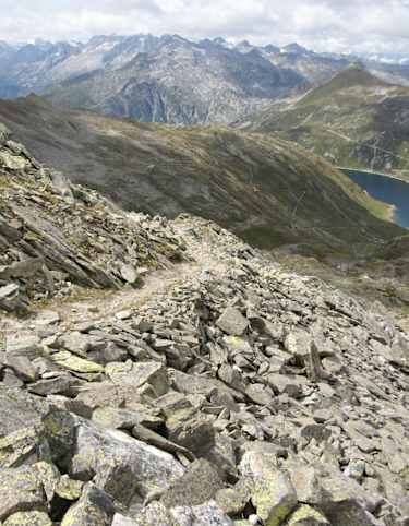 Wir gehen hinter dem Imbissstand bergauf und treffen auf den Weg, auf dem wir gekommen sind. Diesem folgen wir nach rechts bergauf über den Sattel und dann hinab Richtung Canale bis zu dem erwähnten Rastplatz. Wer nochmals den alten Ort besuchen möchte, kann natürlich auf dem vom Hinweg bekannten Weg dorthin gehen. Wer direkt zum Auto zurück möchte, hält sich hier rechts und nimmt etwa 100 m weiter die erste Gasse nach links. Auf dieser geht es steil bergab. Wir kommen an einem Spielplatz und einem kleinen Supermarkt vorbei und treffen dann auf die Hauptstraße von Riva del Garda zum Tennosee. Auf dieser gehen wir links und kommen so zur Bushaltestelle oder, wenige Meter weiter, zum Parkplatz, an dem wir unsere Wanderung begonnen haben.