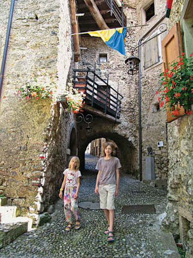 Auf Entdeckungstour in den engen Gassen von Canale. Foto: Johanna Stöckl, Rosemarie Pexa - Rother ErlebnisUrlaub mit Kindern Gardasee