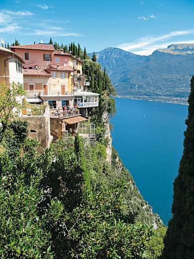 Wie Schwalbennester thronen die Häuser von Pieve hoch über dem Gardasee.Foto: Johanna Stöckl, Rosemarie Pexa - Rother ErlebnisUrlaub mit Kindern Gardasee