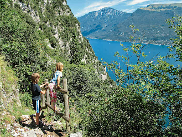 Anfangs recht steiler, ausgesetzter, aber mit Geländern gesicherter Fußsteig; Schwindelfreiheit und Trittsicherheit nötig. Danach bequeme Wanderung auf der alten Straße entlang des Gardaseeufers. Für Kinder ab 8 Jahren geeignet.