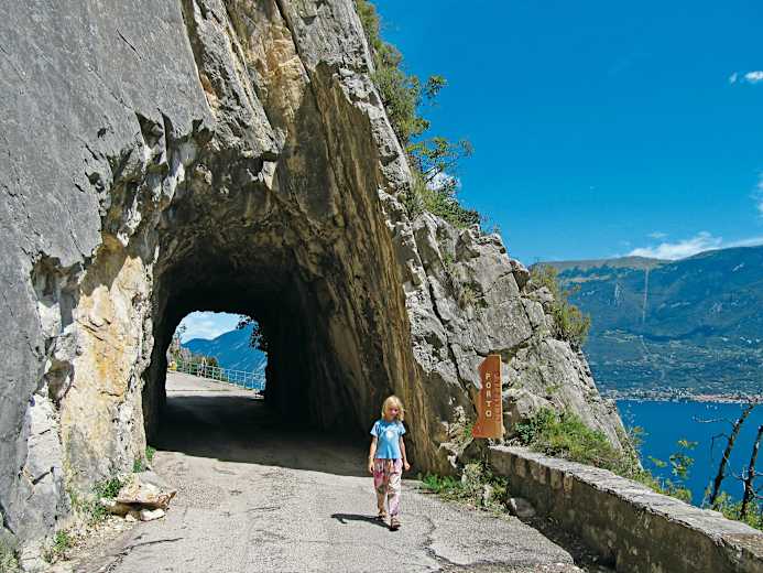 Auf der alten Straße von Limone nach Tremosine.Foto: Johanna Stöckl, Rosemarie Pexa - Rother ErlebnisUrlaub mit Kindern Gardasee