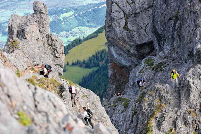 Der Fürstensteig kombiniert mit dem Drei-Schwestern-Weg ist ein anspruchsvoller Pfad, der über atemberaubende Gratwege und gesicherte Felssteige führt. Der Kuhgrat stellt mit 2.123 Metern Höhe den höchsten Punkt der Wanderung dar – von hier genießt man eine umfassende Sicht auf das Rätikon sowie die Schweizer und Vorarlberger Alpen und die Schönheit des Rheintals.
