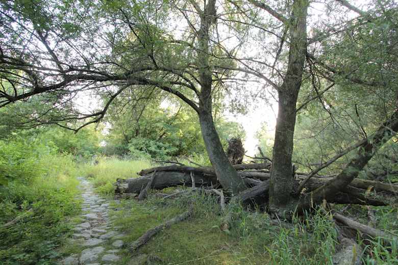 Kurzer Rundweg durch einen der dynamischsten Bereiche des Nationalparks Donau-Auen. Der Weg ist während und nach einem Hochwasser allerdings nicht begehbar. Ausgangspunkt ist der Parkplatz am Ortsende von Schönau neben dem Imbiss-Stand „Radler Treff“. Man überquert den Rückstaudamm und gelangt in einer langgezogenen S-Kurve zum Nationalparkeingang, der durch zwei Holzpiloten gekennzeichnet ist.