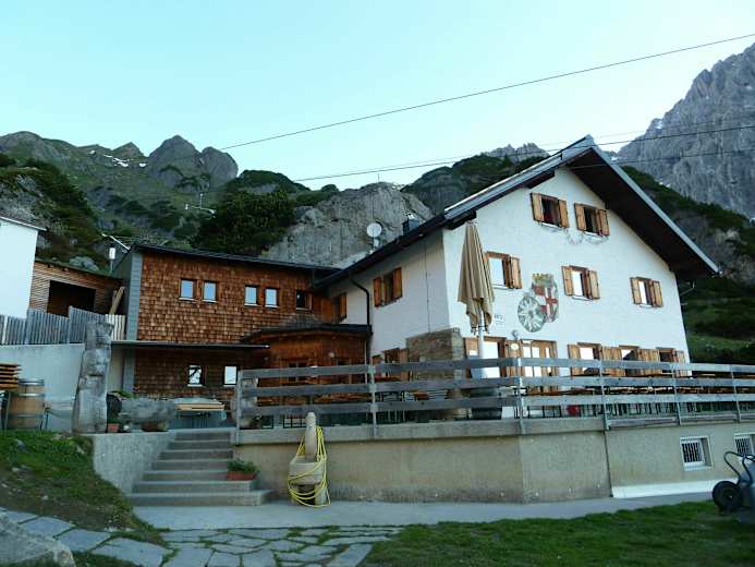 Die Mutekopfhütte ist ein beliebter Stützpunkt für Kletterer, die auch mehrere Tage bleiben. Die Hütte bietet einen Gepäcktransport ab der Talstation der Materialseilbahn an.