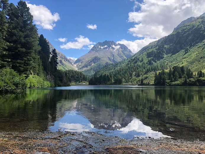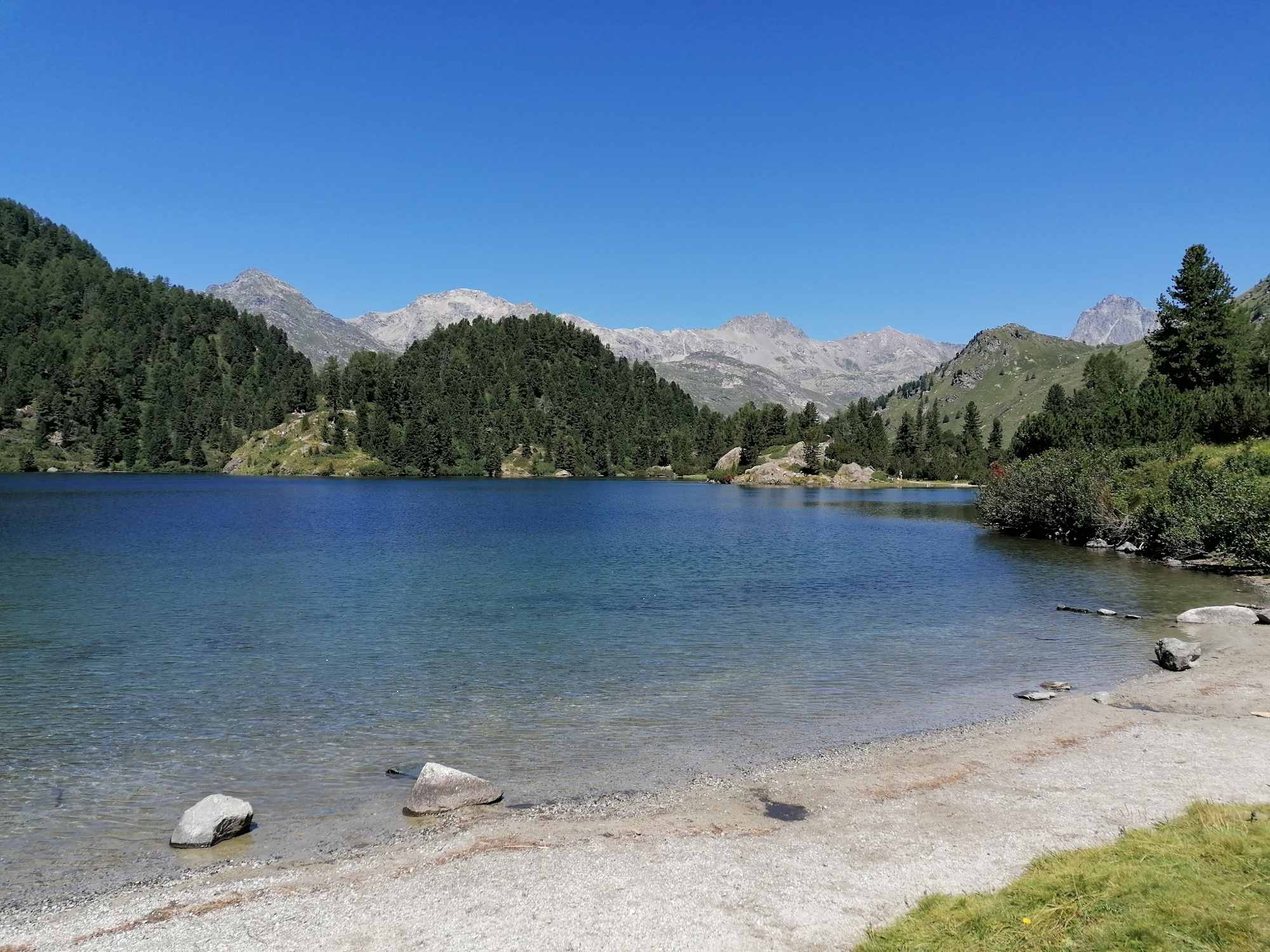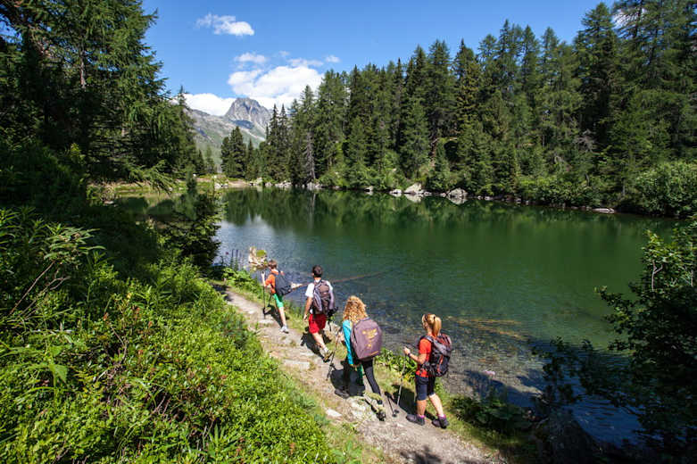 Der Weg folgt nun am Hang entlang, bevor er dann runter zum Lägh da Cavloc führt. An beiden Seen lässt es sich wunderbar rasten. Von hier können Sie auf der Alpstrasse zurück nach Maloja wandern.