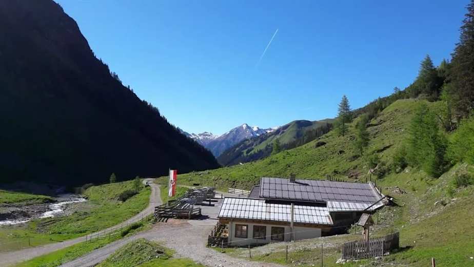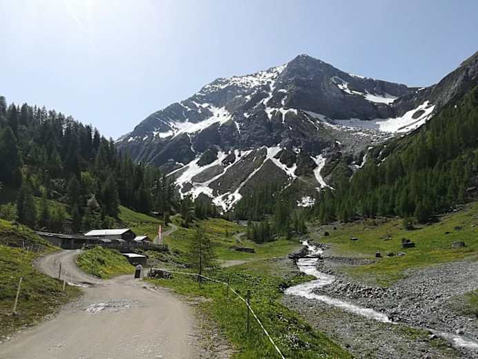 Starte beim Edelweisshaus und gehe die Gemeindestraße bis zur Weggabelung, folge dem Wegweiser zur Kaiseralm.