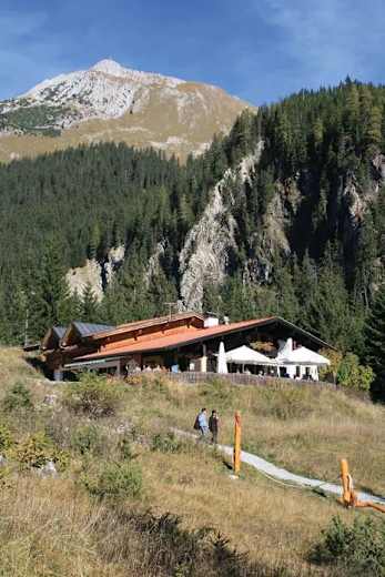 Deine Wanderung verläuft über den ansteigenden Wanderpfad durch den schattigen Wald bis zur Alm.
