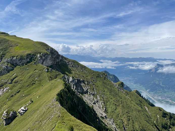Vom Gipfel des Falknis bietet sich dem Wanderer ein herrlicher Rundblick. Jenseits des Rheintals sind die Gipfel der Glarner Alpen sowie die Churfirsten und der Säntis im Alpstein zu sehen. Nach Norden reicht der Blick sogar bis über den Bodensee hinaus.