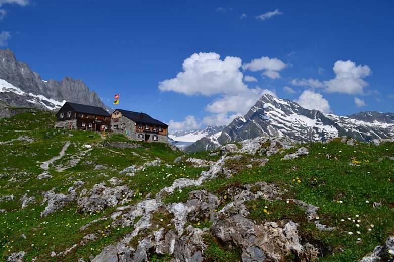 Weiter setzen wir die Wanderung ins hintere Maderanertal auf dem leicht abfallenden Wegstück Richtung Stäfel, Öfeli und zum Tritt fort. Vom Tritt führt der Weg in einem Dutzend Spitzkehren hinunter zum SAC Hotel Maderanertal beim Balmenegg. In der guten alten Zeit genoss das SAC Hotel Maderanertal dank seiner Lage Weltruf und auch heute ist die Unterkunft dank des idyllischen Standortes immer eine Einkehr wert. Vom Balmenegg weist uns der Wegweiser zum Balmenschachen und durch die Kuhalp Stössi. Auf dem historischen Talweg entlang des wilden Chärstelenbaches erreichen wir die Talstation der Luftseilbahn Golzern, den Zielort der Wanderung. Diese Tour bietet grandiose Ausblicke auf Gletscher und die umliegenden majestätischen Dreitausender.