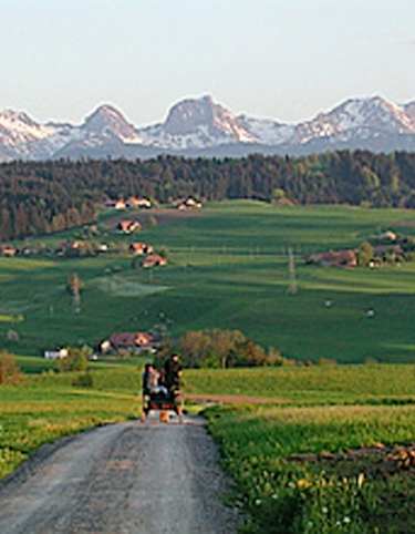 3 Minuten vor dem Turner führt der weg rechts hinunter Richtung Trubschachen. Zuerst durch ein kurzes Waldstück, dann nordseitig am Hang nach Ober Altgfäl (1'095 m). Gleich rechts hinauf zum Hof, dann auf einem Grasweg über die breite Egg. Das folgende Teersträsschen über die Risisegg schmälert die Schönheit dieser Höhenwanderung keineswegs, geniessen Sie nun stets eine herrliche Weitsicht ins Emmental.