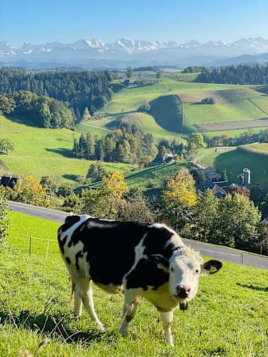 Aussichtspunkt Lueg: Einer der schönsten Aussichtspunkte im Emmental. Die Aussicht reicht vom Pilatus über Eiger, Mönch und Jungfrau bis zum Dent-de-Lys. Das Denkmal beim Aussichtspunkt erinnert an die 54 Berner Kavalleristen, die während des Ersten Weltkriegs ihr Leben verloren.