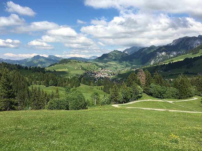 Der Ausflug in den „hohen Norden“ beginnt mit einer Fahrt mit der Rotenfluebahn – den mächtigen Mythen entgegen. Auf der Wanderung lässt die Aussicht immer wieder innehalten: auf den Talkessel Schwyz, den Lauerzer- und Urnersee und später auch in die Ybriger Berge.