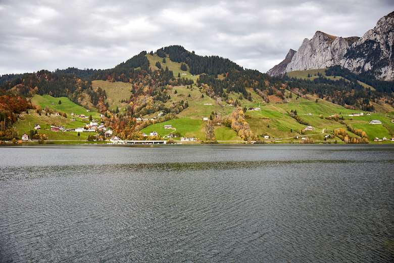 Der Startpunkt der Wanderung ist Innerthal am idyllischen Wägitalersee. Auf dem ersten Abschnitt der Strecke läuft man auf einer Strasse vom Wägitalersee in Richtung Gwürzwald.
