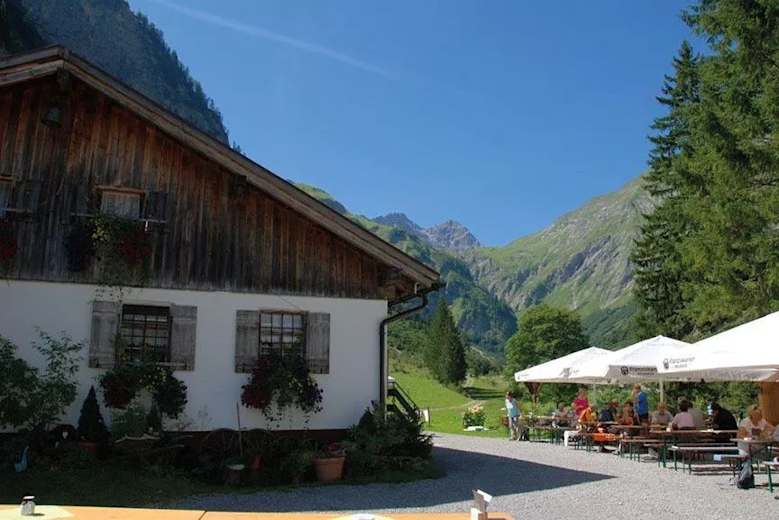 Familientaugliche Wanderung durch das wunderschöne Hinterhorntal, einem einsamen Seitental des Tiroler Lechtaler, zur bewirtschafteten Petersbergalm. Ausgangspunkt der Tour ist der idyllische Ort Hinterhornbach.
