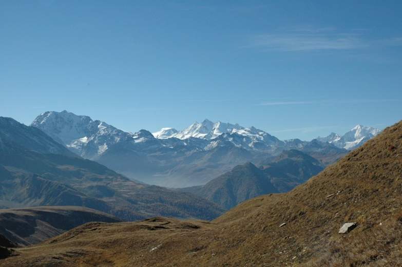 Ab Mässhitta wird auf einen Pfad gewechselt, der teils steil bis zu den Tanzbede hinaufsteigt. Auffallend: die von Schotter bedeckten Hügel und Gipfel vom Bättli- und Milihorn. Wenig später ist der höchste Punkt der Wanderung auf 2563 Metern erreicht. Vom Saflischpass ist das Panorama auf die Walliser Viertausender herrlich.