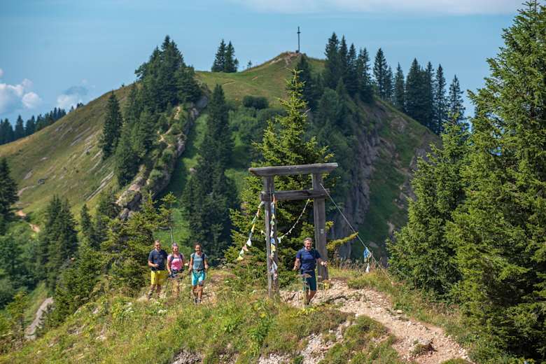 Nach Auffahrt mit der Hochgratbahn geht es vom Start auf 1.708 Meter Höhe zur Porta Alpinae. Weiter dem Pfad entlang des Grates über die westliche Nagelfluhkette folgen. Dabei überschreiten wir die Gipfel von Seelekopf, Hohenfluhalpkopf und Eineguntkopf. Auf diesem alpinen Abschnitt sind Trittsicherheit und Schwindelfreiheit gefragt. Fantastische Panoramablicke in die Allgäuer und Vorarlberger Gipfel, zum Sänitsmassiv in der Schweiz, hinüber zum Bodensee und weit über das Voralpenland, begleiten diesen Abschnitt über den Grat.