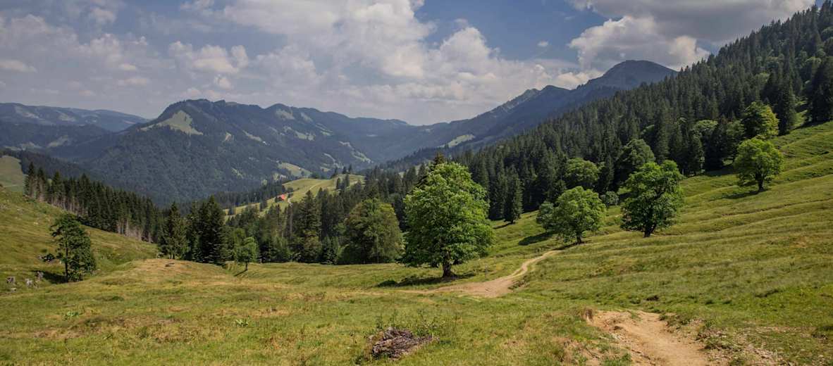 Diese mittelschwere Rundwanderung bei Oberstaufen im Allgäu führt in das Alpgebiet zwischen Hochgrat und Imberg. Man besucht prächtige alte Baumveteranen. Oberhalb von der Oberstiegalpe kommt man zu einem Bergahorngarten. Die Tour ist gut für Familien geeignet und kann mit öffentlichen Verkehrsmitteln erreicht werden.