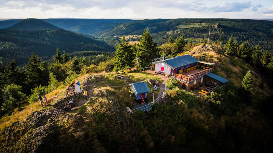 Die Wanderung zum sagenumwobenen Zella-Mehliser „Hausberg“ beginnen Sie am Markt in Mehlis. Der Weg führt über den Schwarzberg zum Trimm-Dich-Pfad. Anschließend folgen Sie der Beschilderung „Gemsenstieg“.