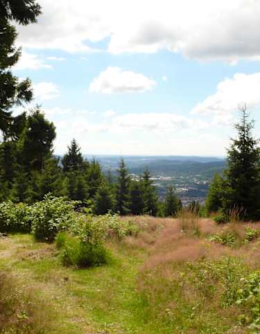 Gleich nach den ersten Metern genießt der Wanderer einen herrlichen Ausblick über den Alpinhang und das idyllische Städtchen Steinbach-Hallenberg. Über freie Wiesen geht der Weg weiter über die Ruppbergrunde und mit einem leichten Anstieg hoch zum Steinhauk. Bei guter Sicht bietet sich hier wieder ein wunderbarer Blick auf das Haseltal, die Hohe Möst, den Hohen Stein sowie die Zwölf Apostel.