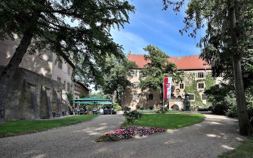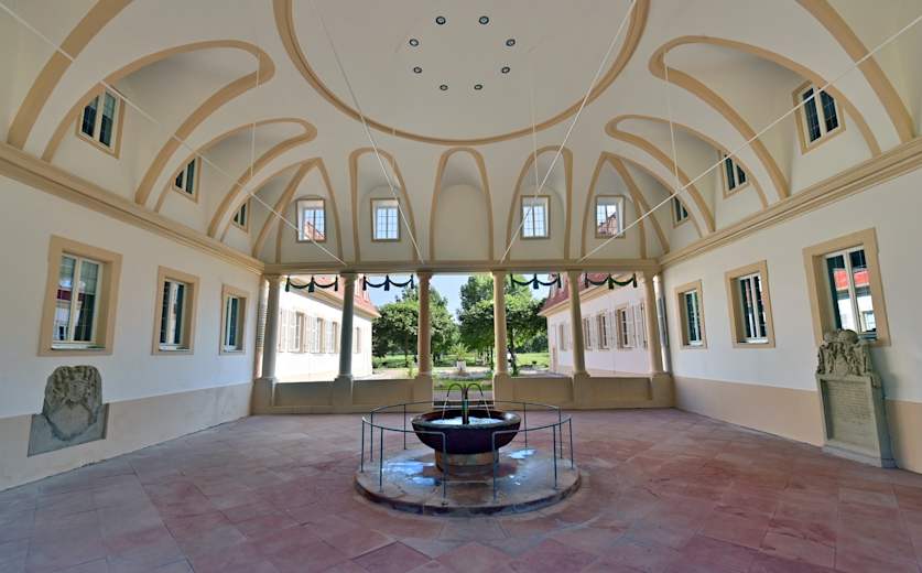 Das nächste Zwischenziel ist Aschach. Bekannt ist der Ort besonders durch die Museen im dortigen Schloss. Die Wohnräume der Grafen-Familie, ein Volkskundemuseum, das Schulmuseum und Gastronoomie sind dort beheimatet. Schloss Aschach ist immer einen Besuch wert. Von Aschach bis zum Ende der Wanderung begleitet uns die Fränkische Saale. Über Wiesenwege kommen wir zum Ausgangsziel zurück, dem Kurgarten in Bad Bocklet.