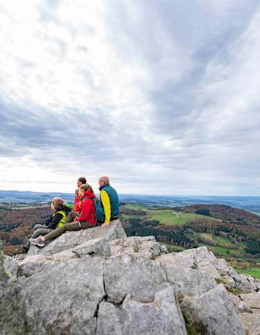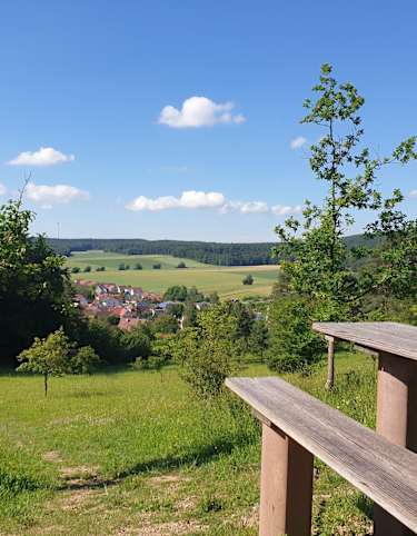 Der bequeme Rundwanderweg schlängelt sich vorwiegend auf Wiesenwegen und Waldpfaden durch die sanfte Hügellandschaft zwischen Rhön und Grabfeld. Die Extratour startet in Münnerstadt und führt entlang des Talwassers zum Hainberg. Auf dem Gipfel wartet der Wartturm "Blauer Storch" als erster Rastpunkt.