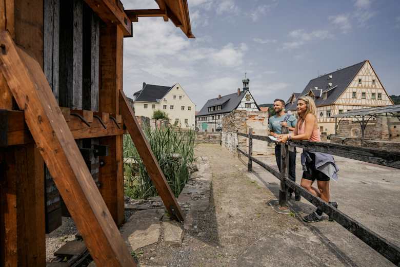 Das museale Saigerhüttenareal beherbergt Kupferhammer, Ausstellungen, Schauwerkstätten, Stockhausen – das lebendige Spielzeugland für Kinder, Hüttenteich, Bergbaulehrpfad, Hotel und Gastronomie. Hier endet auch schon die Etappe. Bei einem Stadtbummel auf den historischen Pfaden des Olbernhauer Reiterleins und im Theater Variabel kann man den Tag kulturell ausklingen lassen.