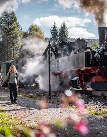 Die Etappe beginnen wir am Denkmalskomplex Saigerhütte. Sie führt am idyllischen Hüttenteich Richtung Rothenthal vorbei und verläuft in Grenznähe zu Tschechien abseits der Straße. Nach Straßenquerung gehen wir die asphaltierte Pföbe bergauf, bis am Waldrand der Sedanweg als Waldweg Richtung Rübenau abzweigt. Oberhalb des landschaftlich reizvollen Natzschungtales wandern wir durch Buchenwald. Unterwegs lädt der Rastplatz und Aussichtpunkt "Stößerfelsen" zur Wanderpause ein. Nach Abzweig auf den Brandleitenweg an der "Kleinen Steinbach" kommen wir nach ca. einem Kilometer Mischwald an die unübersehbare Wanderwegekreuzung "Große Steinbach". Nach Erfrischung am klaren Steinbach und Überquerung der Steinbogenbrücke steigt der Kammweg noch einmal bis zum Hammerweg an. Diesen verlassen wir am Abzweig und wechseln auf den Neulsweg.