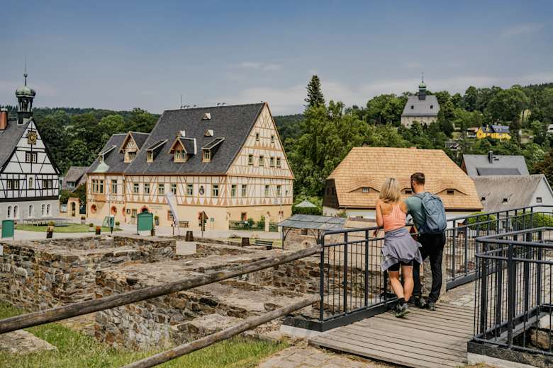 Der Weg startet am Denkmalkomplex Saigerhütte mit Kupferhammer, Museen und Kindererlebniswelt. Im Welterbe-Bestandteil hergestelltes Grünthaler Dachkupfer findet sich auf den bekanntesten Dächern der Welt, z.B. dem Reichstagsgebäude Berlin oder dem Petersdom in Rom.