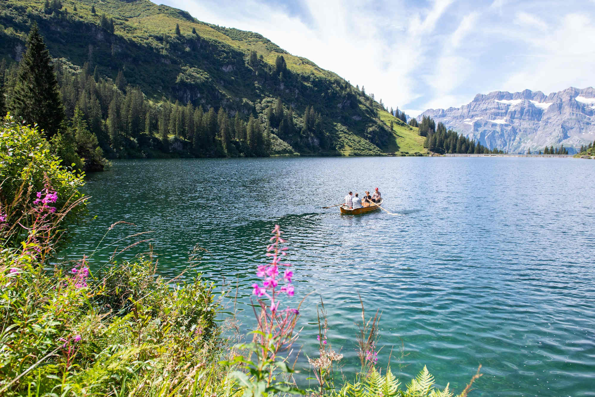 Nun geht es zuerst am Seeufer entlang, wo verschiedene Feuerstellen zum Verweilen einladen. Anschliessend folgt ein leichter Aufstieg auf die Alp Ober Stafel. Auf ca. 1926 M. ü. m. verlassen Sie den Leglerhüttenweg und folgen dem Bach entlang und laufen weiter bis zum höchsten Punkt der Wanderung dem Wildmadfurggeli. Ein herrliches Panorama eröffnet sich Ihnen zum Piz Sardona, Tschingelhörner und noch vielen mehr.