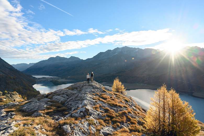 Den Auftakt der Via Engiadina bildet das Feriendorf Maloja am gleichnamigen Alpenpass, an der Grenze zum urtümlichen Bergell. "Aussichtsreich" - diese Beschreibung passt sicherlich auf sämtliche Etappen dieses Höhenwanderweges, doch erwartet den Wanderer doch immer wieder ganz besonders schöne Momente, wenn sich beim Aufstieg vorbei am Weiler Pila und der Siedlung Blaunca der spektakuläre Blick über die Engadiner Seenlandschaft öffnet. Lassen Sie sich ruhig von dieser Schönheit überwältigen und pausieren Sie auf den stetig ansteigenden Pfaden, um die Aussicht richtig zu geniessen.
