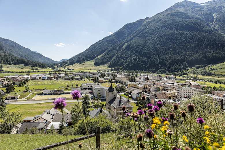 Zernez liegt direkt am Flüelapass und an der Engadiner Strasse H27 (10 Minuten Fahrtzeit ab Vereina Südportal)