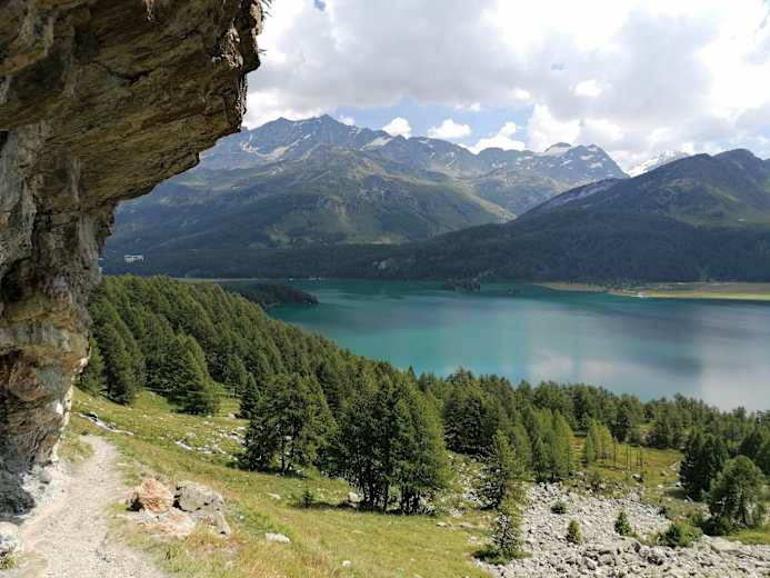 Umleitung: ab Sils an den Silsersee und diesem entlang nach Isola wandern und weiter bis Maloja. Wer möchte kann in Sils Bootshaus auch das Schiff nehmen und gemütlich nach Maloja fahren.