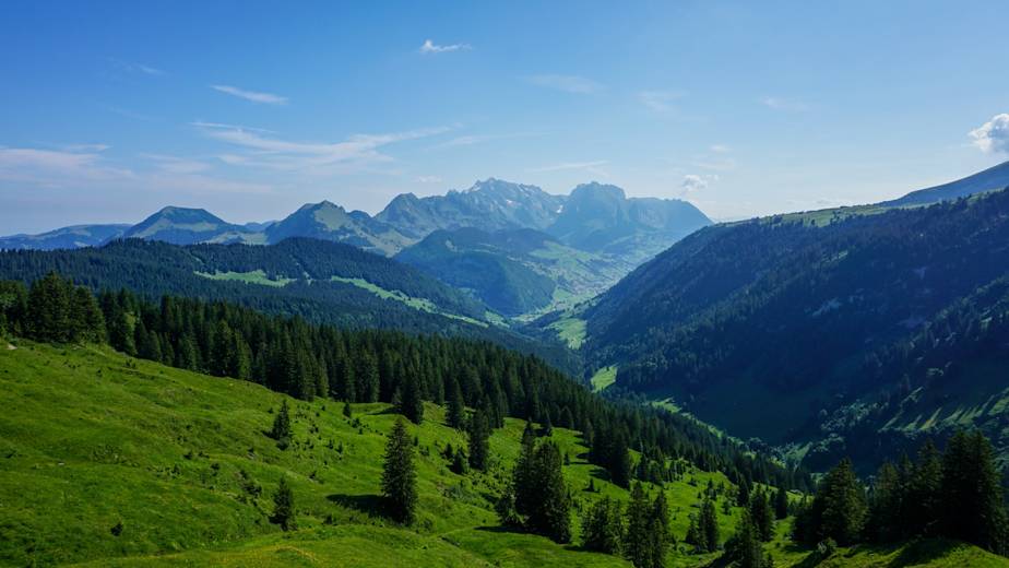 Der Fels zeigt sich auch an der Oberfläche und erfordert auf der zweiten Etappe gleich im ersten Streckenabschnitt einige Trittsicherheit. Nirgends sonst auf dem Toggenburger Höhenweg ist die Streckenführung so alpin. Aber keine Sorge! In den besonders anspruchsvollen Passagen sind Stahlseile fixiert, an denen man sich festhalten kann. Wer schwindelfrei ist und gerne ganz oben steht, dem sei die optionale Besteigung des Leistchamms empfohlen. Die zusätzlichen 233 Höhenmeter zum Gipfel werden mit einer gewaltigen Aussicht über den Walensee und hinüber zu den Glarner Alpen belohnt. Eine formidable Aussicht geniessen alle Höhenweg-Wanderer auch vom Flügespitz (1701 m). Von hier aus ist der Blick frei auf das ganze östliche Toggenburg, das Alpsteinmassiv und die Churfirsten, die man nun hinter sich lässt.