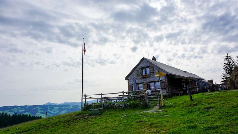 Über eine gut ausgebaute Schotterstrasse erreicht man das Berggasthaus Chrüzegg und kann dort den Tag ausklingen lassen. Auch hier – wie könnte es anders sein – werden Höhenwegwanderer mit einem uneingeschränkten Weitblick belohnt.