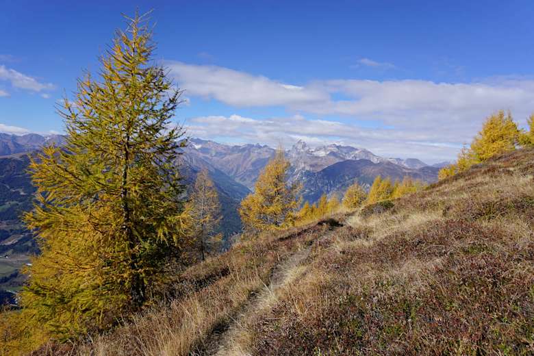 Die Tour ist besonders im Herbst schön, wenn die Luft klar ist und die Lärchen ein gelbes Nadelkleid tragen.