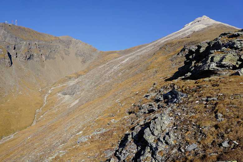 Kurzer Abstieg bevor es zur Bairnock/Punta del Dosso und zur Weißsitze/Punta Bianca geht. Foto: Matthias Knaus