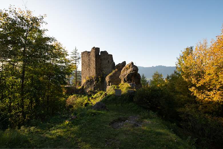 Vom Zentrum von Triesenberg führt uns der Weg zu einem eindrücklichen Findling. Anschliessend gelangen wir über einen stetig ansteigenden Fuhrweg zu dem unter Denkmalschutz stehenden Gehöft Profatscheng. Von hier geniessen wir einen fantastischen Blick auf das Rheintal. Im Anschluss geht es auf einem Wanderweg im Wald steil bergab bis zur Ruine der Burg Schalun. Die Ruine der Burg Schalun ist auf einer Felsterrasse rund 400 Meter über dem Ortszentrum von Vaduz gelegen. Sobald der Weg flacher wird, geniessen wir vom Quadretschaweg bereits einen herrlichen Blick auf Schloss Vaduz.