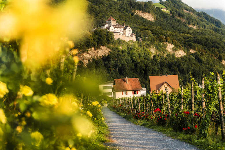 Auf dem Liechtenstein-Weg gelangen wir in Vaduz gleichmässig ansteigend am Weingut der Hofkellerei des Fürsten von Liechtenstein entlang durch Alt-Vaduz bis zum Roten Haus. Von dort geniessen wir einen wunderbaren Blick auf Schloss Vaduz. Weiter geht es dann über einen Waldpfad bis zur Universität Liechtenstein. Anschliessend wird der Weg flacher und führt uns zu einem Murgang (auch Rüfe genannt) und danach zu den Ruinen eines römischen Kastells bis ins Dorfzentrum von Schaan.