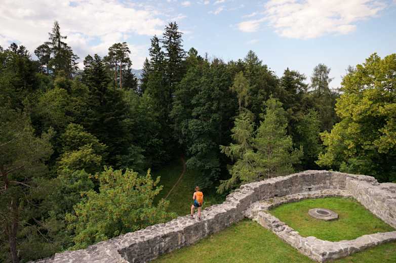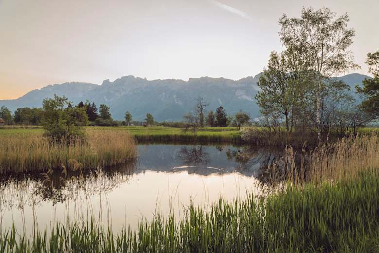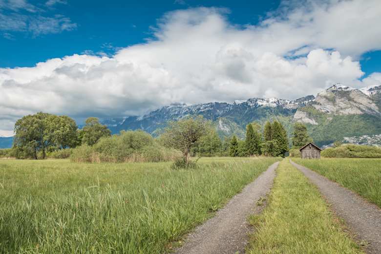 In Ruggell gelangen wir zuerst zum Küefer-Martis-Huus. Das denkmalgeschützte Haus aus dem 18. Jahrhundert ist das Kulturhaus der Gemeinde. Über den Binnendamm geht es dann weiter ins Ruggeller Riet, ein rund 90 Hektar grosses Naturschutzgebiet im Norden Liechtensteins. Fauna und Flora bieten dem Naturliebhaber ein herrliches Naturerlebnis. Nach dem flachen Riet folgt dann der steile Anstieg nach Schellenberg, wo wir zuerst die Ruinen der Unteren Burg passieren. Am Kloster vorbei führt uns der Weg schliesslich ins Dorfzentrum von Schellenberg.