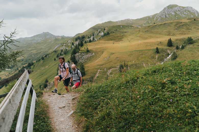 Der stetig an Höhe verlierende Talseitenwechsel kann entweder auf der bequemen Alpstraße oder auf schmalen Wald- und Wiesenpfaden zurückgelegt werden. Das letzte Ziel ist die Peeralm. Die neu renovierte Almhütte lockt noch einmal zur Einkehr, bevor es hinab zum Parkplatz am Talboden geht.