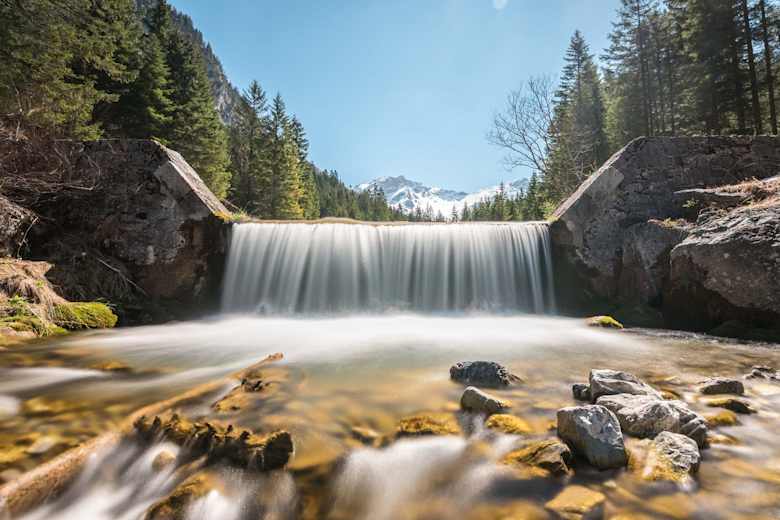 Im Herbst, wenn der erste Schnee auf den Bergen liegt und das Tal in goldenem Herbstlaub erstrahlt, glitzern die weißen Kaskaden der Samina herrlich im Sonnenlicht.